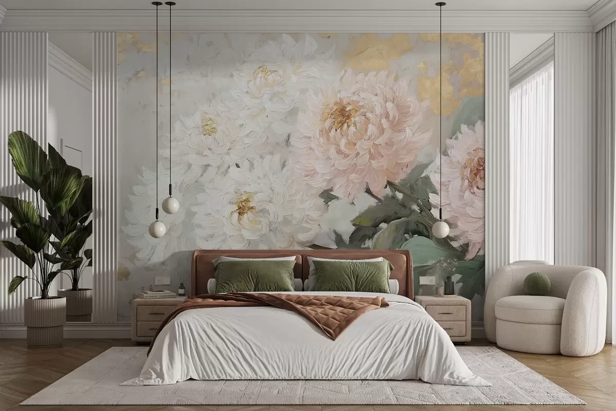 Papier peint Chrysanthèmes délicats en style acrylique N° w08766