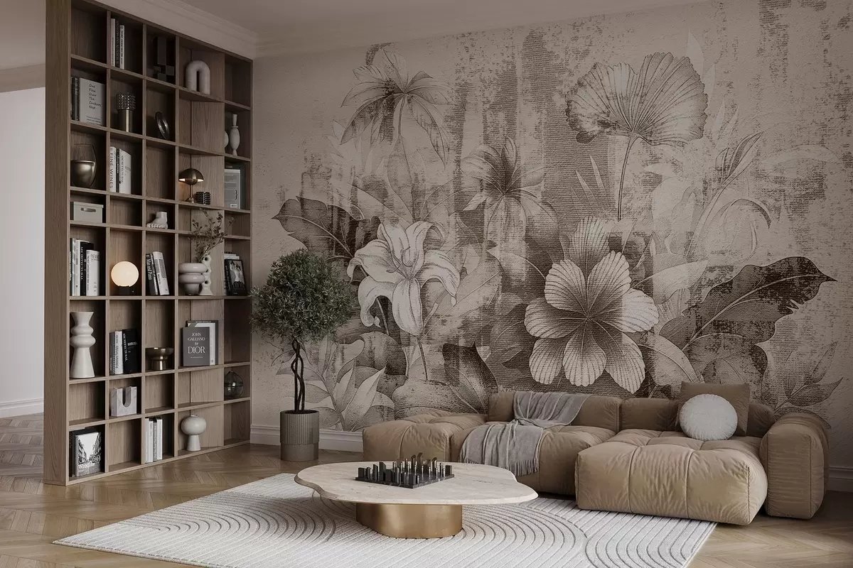 Papier peint Design vintage avec fleurs et plantes exotiques N° w08767v2