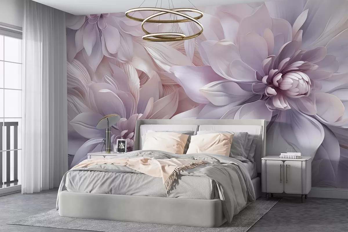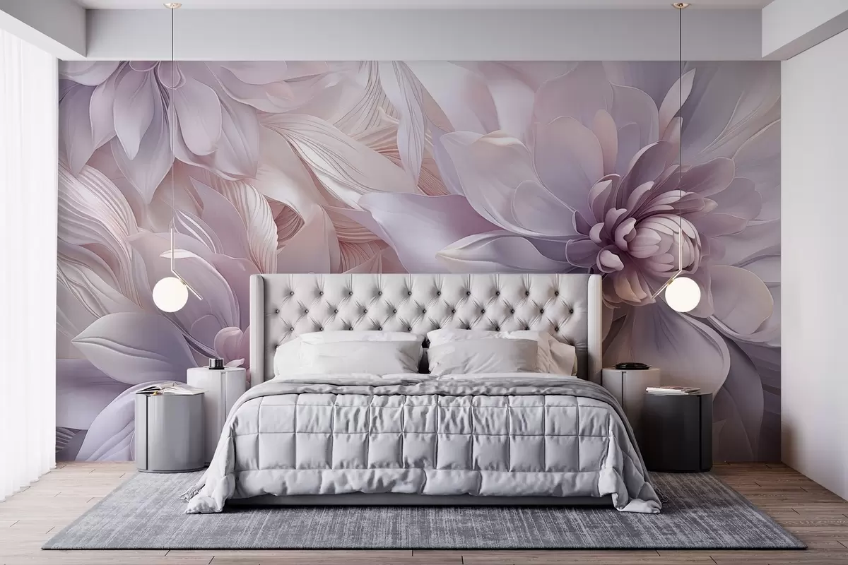 Papier peint Fleurs douces et superposées dans des tons de rose pâle, de lavande et de blanc, avec des pétales délicats et des détails complexes N° w08783