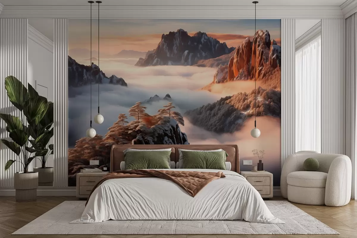 Papier peint Charmant paysage de montagne avec brume et arbres N° w08807