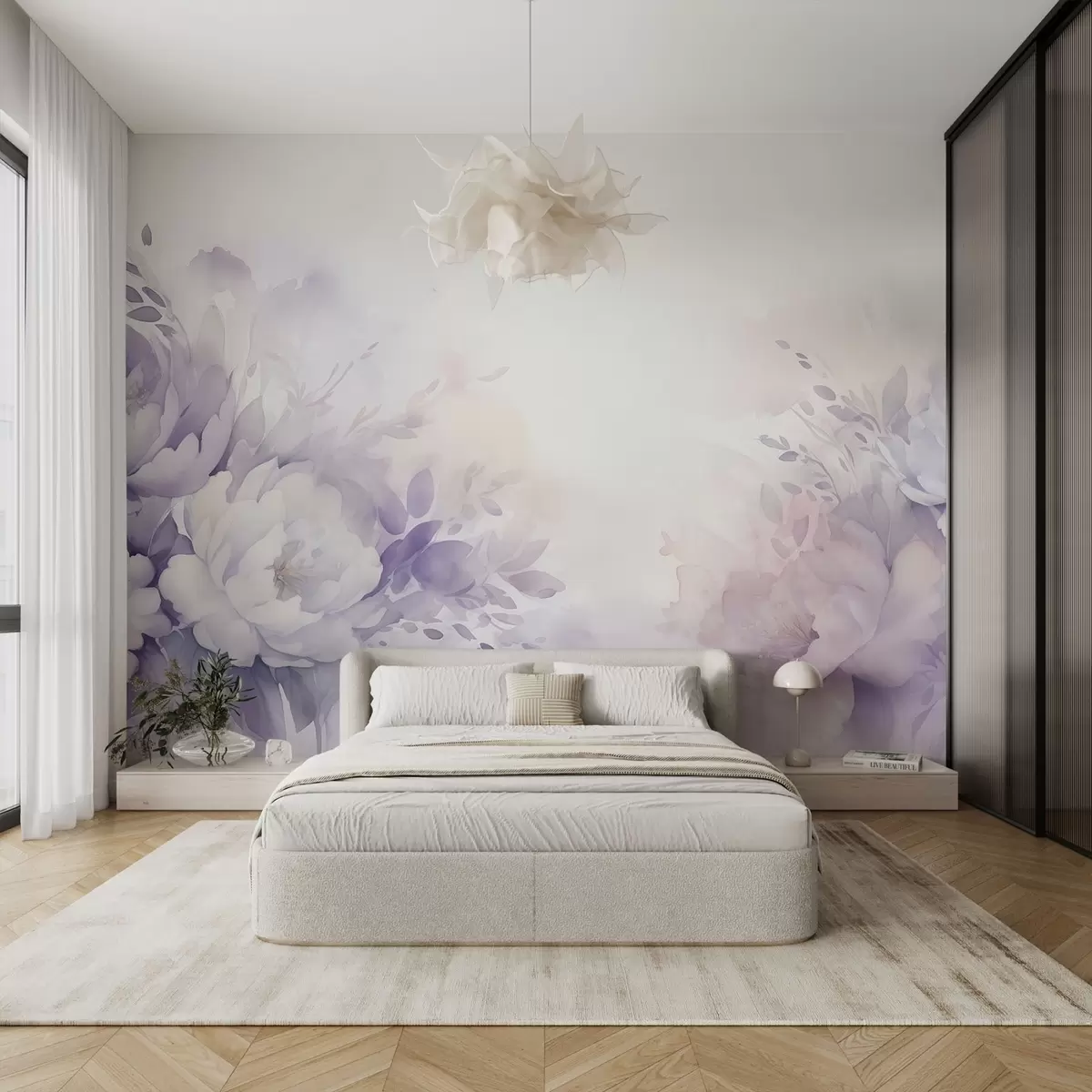 Papier peint Grandes fleurs lilas délicates, imitation d'aquarelle N° w08946