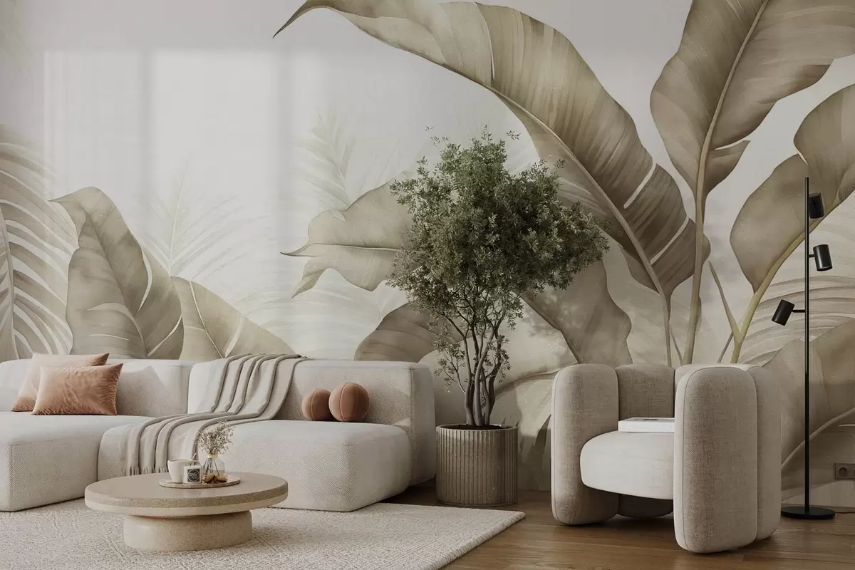 Papier peint Grandes plantes tropicales en style grunge N° w08948