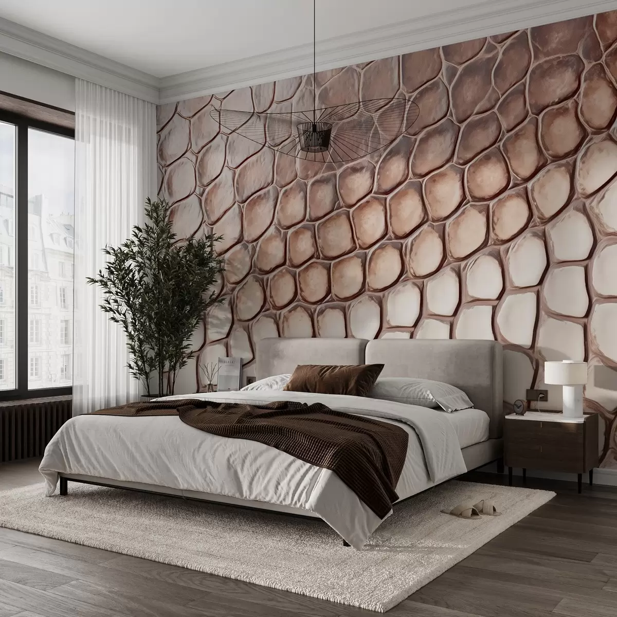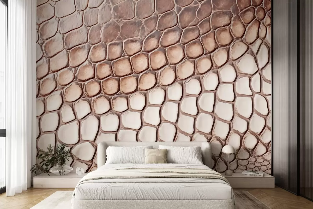Papier peint Peau de reptile blanc-brun, motif d'écailles N° w08957