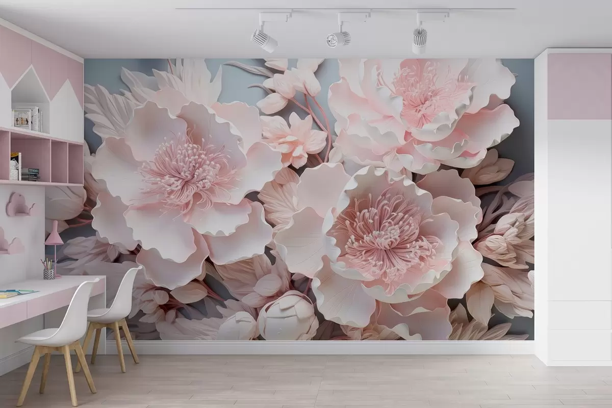 Papier peint Fleurs roses volumineuses aux nuances délicates N° w08988