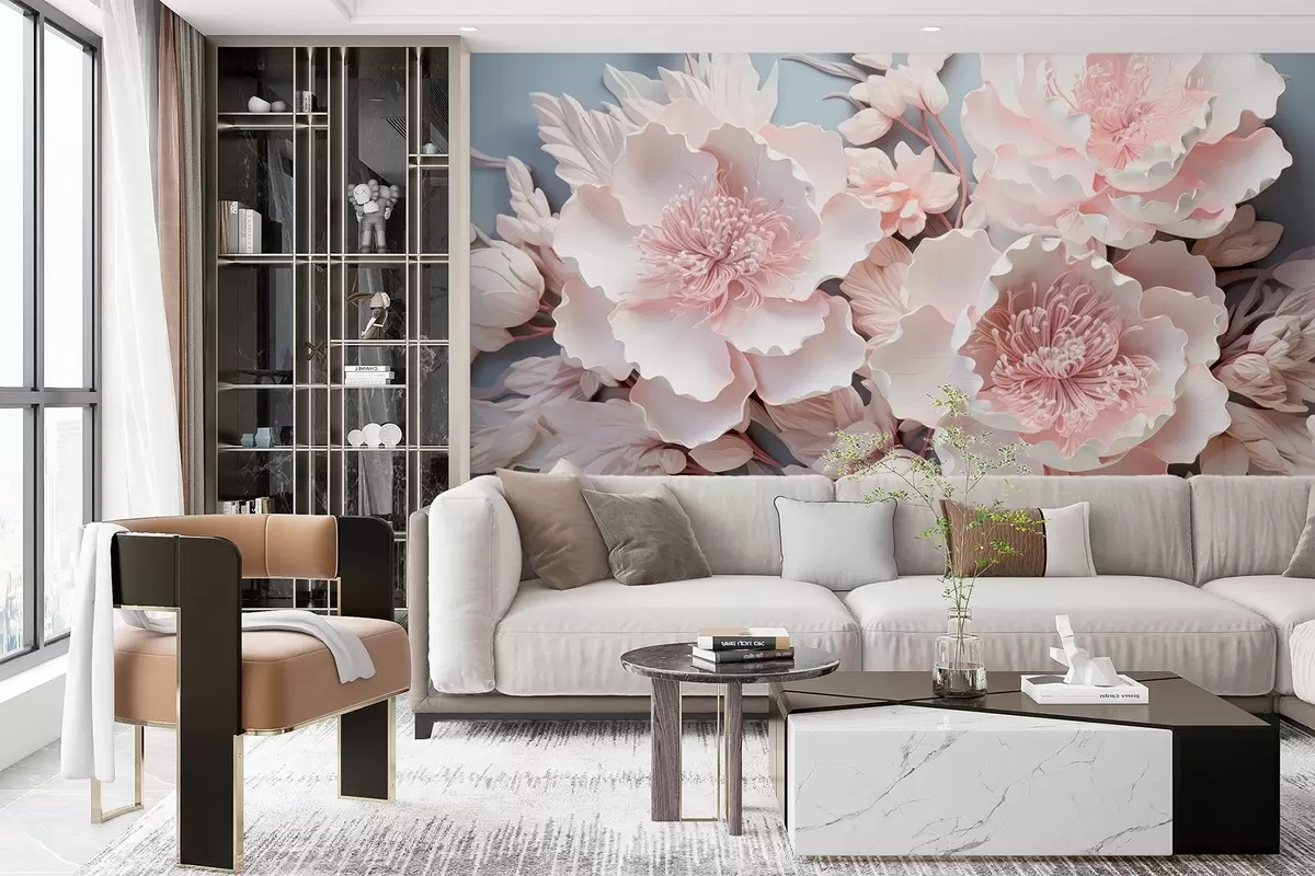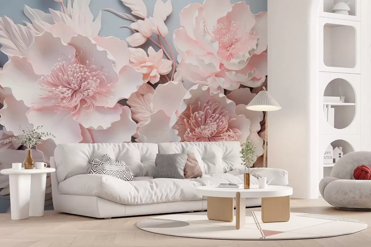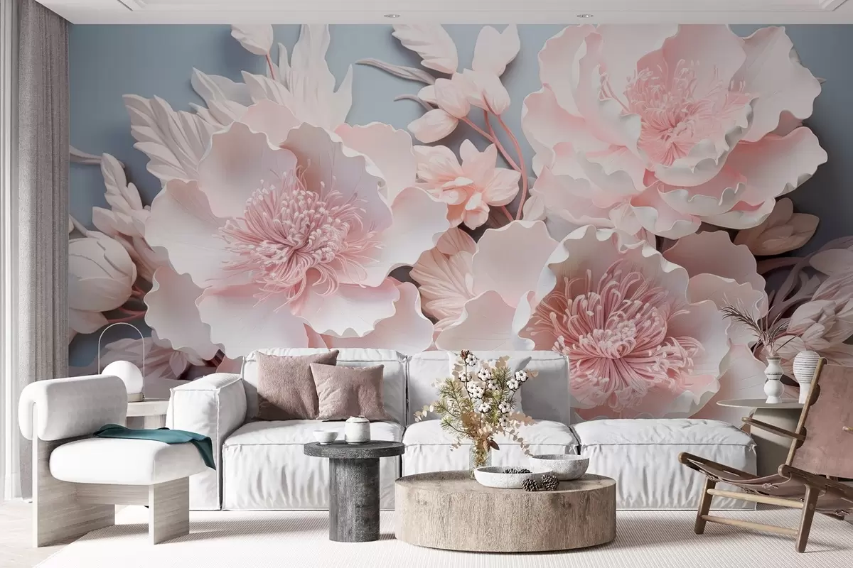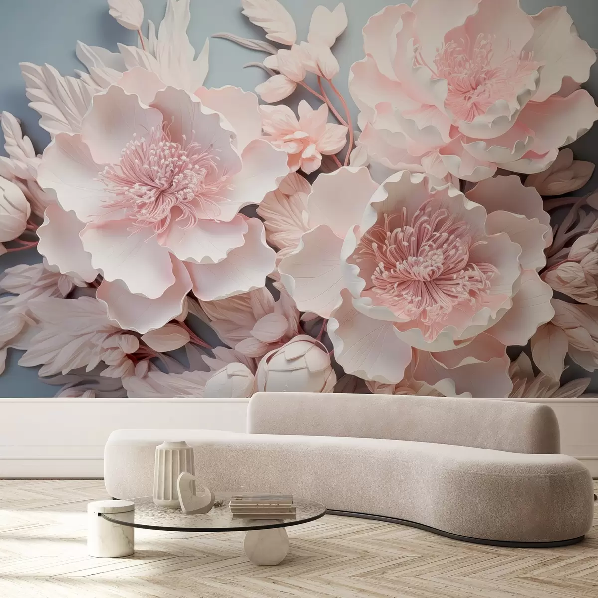 Papier peint Fleurs roses volumineuses aux nuances délicates N° w08988