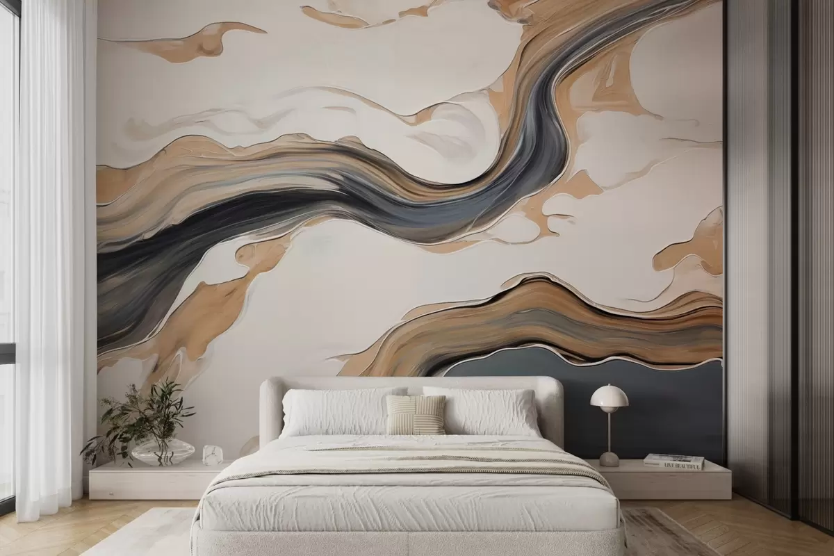 Papier peint Traces brun-gris en forme de vagues N° w09001