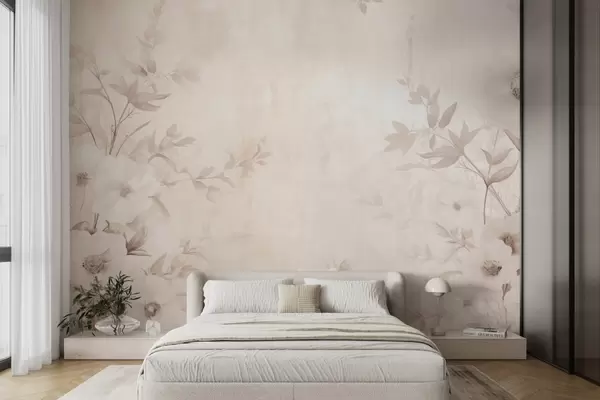 Papier peint Fleurs et feuilles dans des tons neutres et clairs en style aquarelle N° w09040