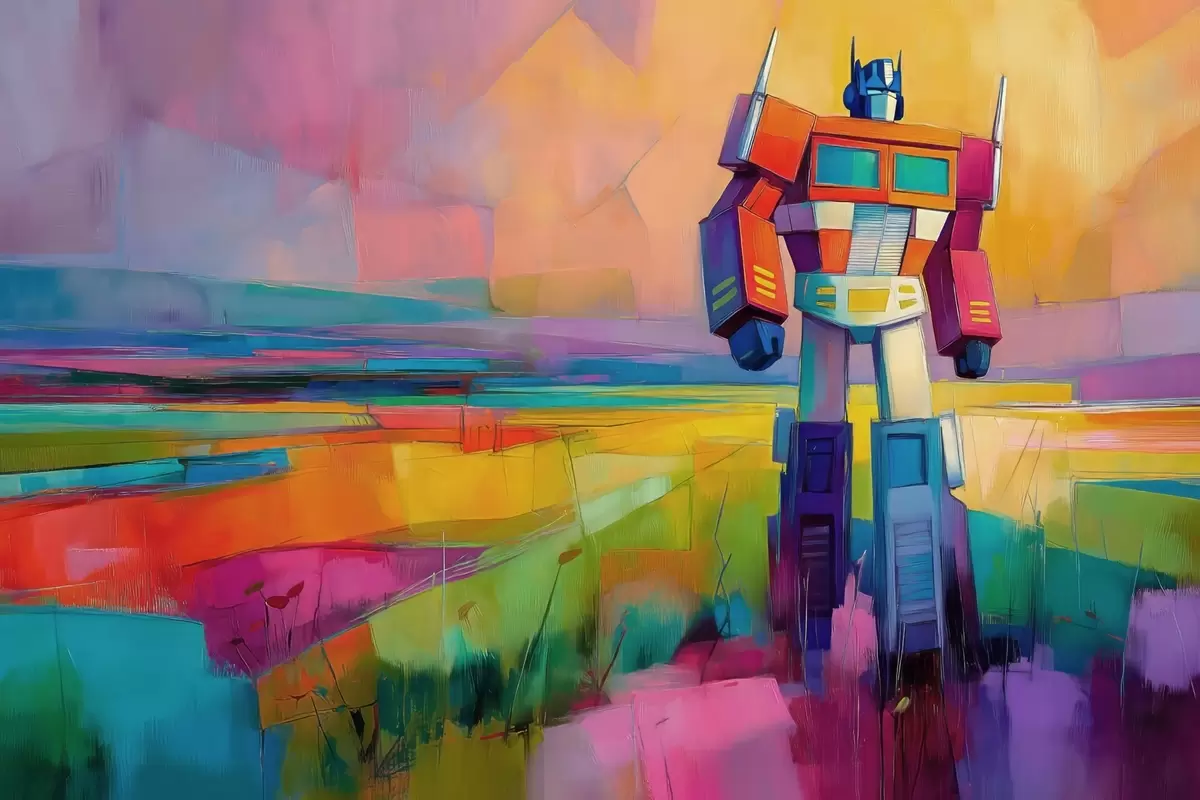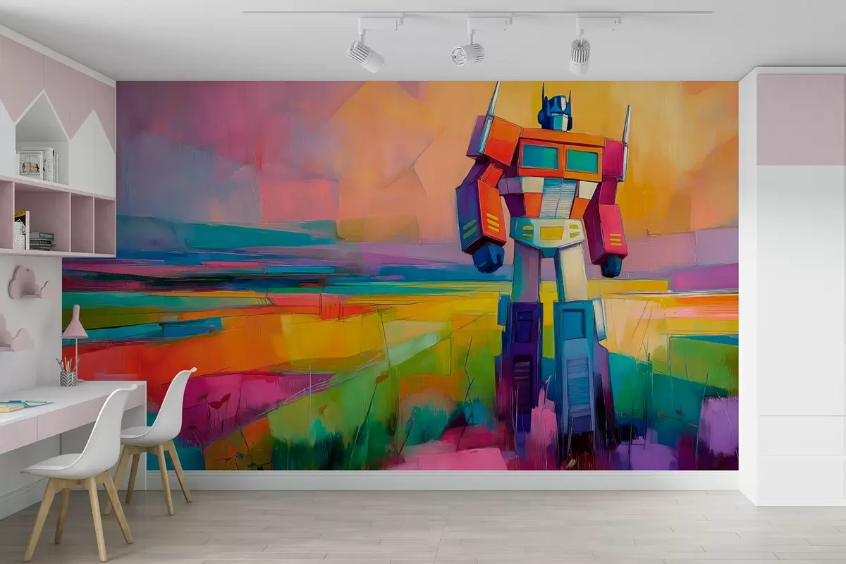 Papier peint Robot sur fond de paysage abstrait lumineux dans le style de la peinture à l'huile N° w09096
