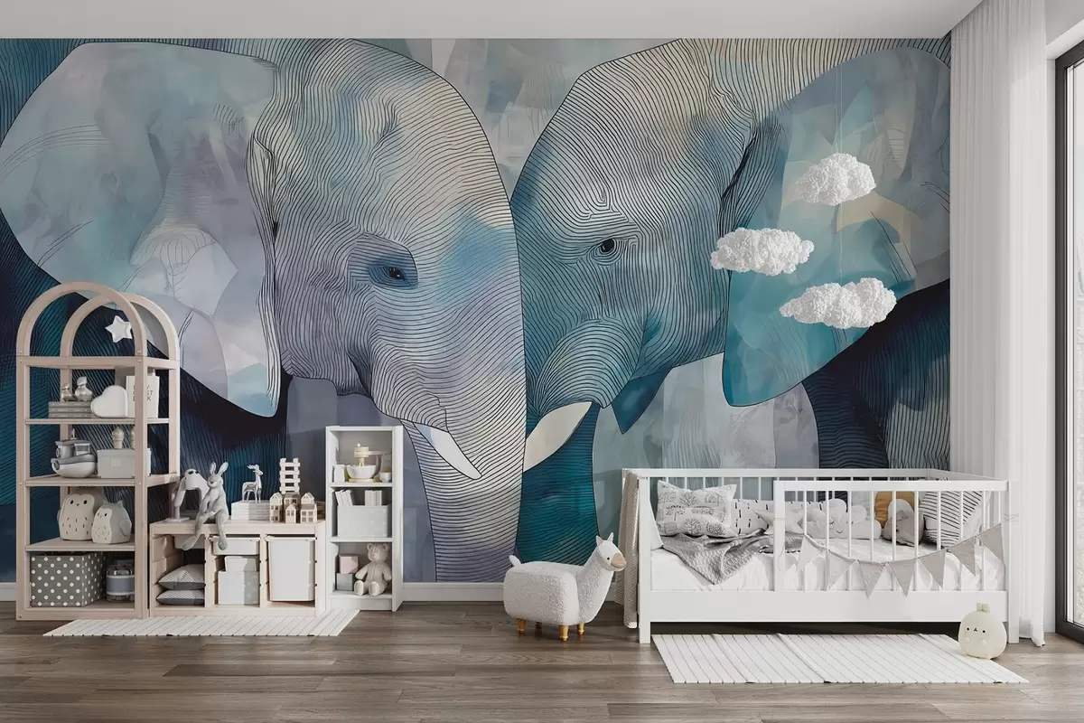 Papier peint Mignons éléphants bleus dans un style aquarelle N° w09098