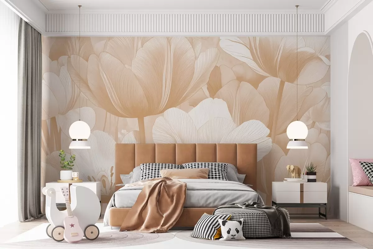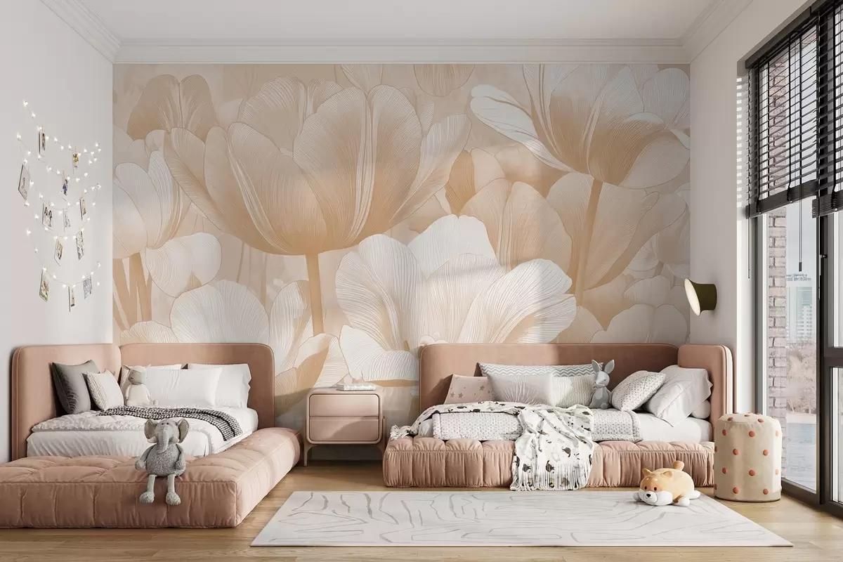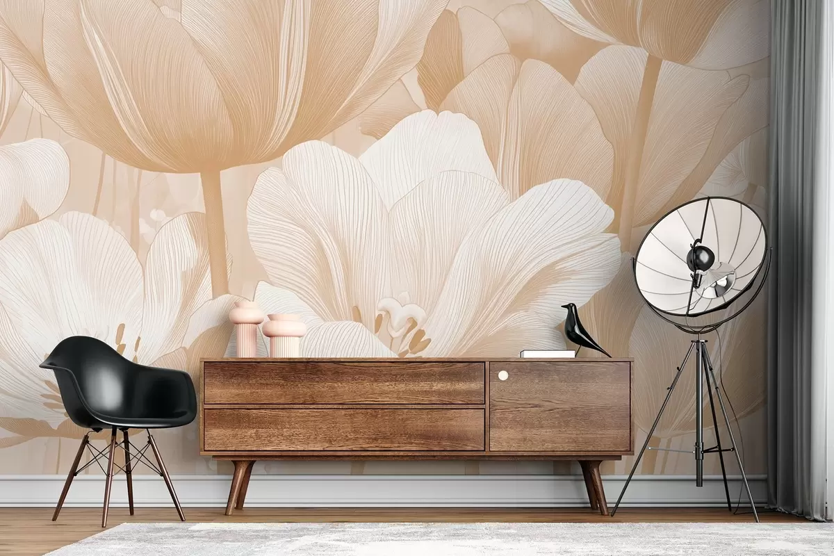 Papier peint Coquelicots beiges dans les tons clairs N° w09099
