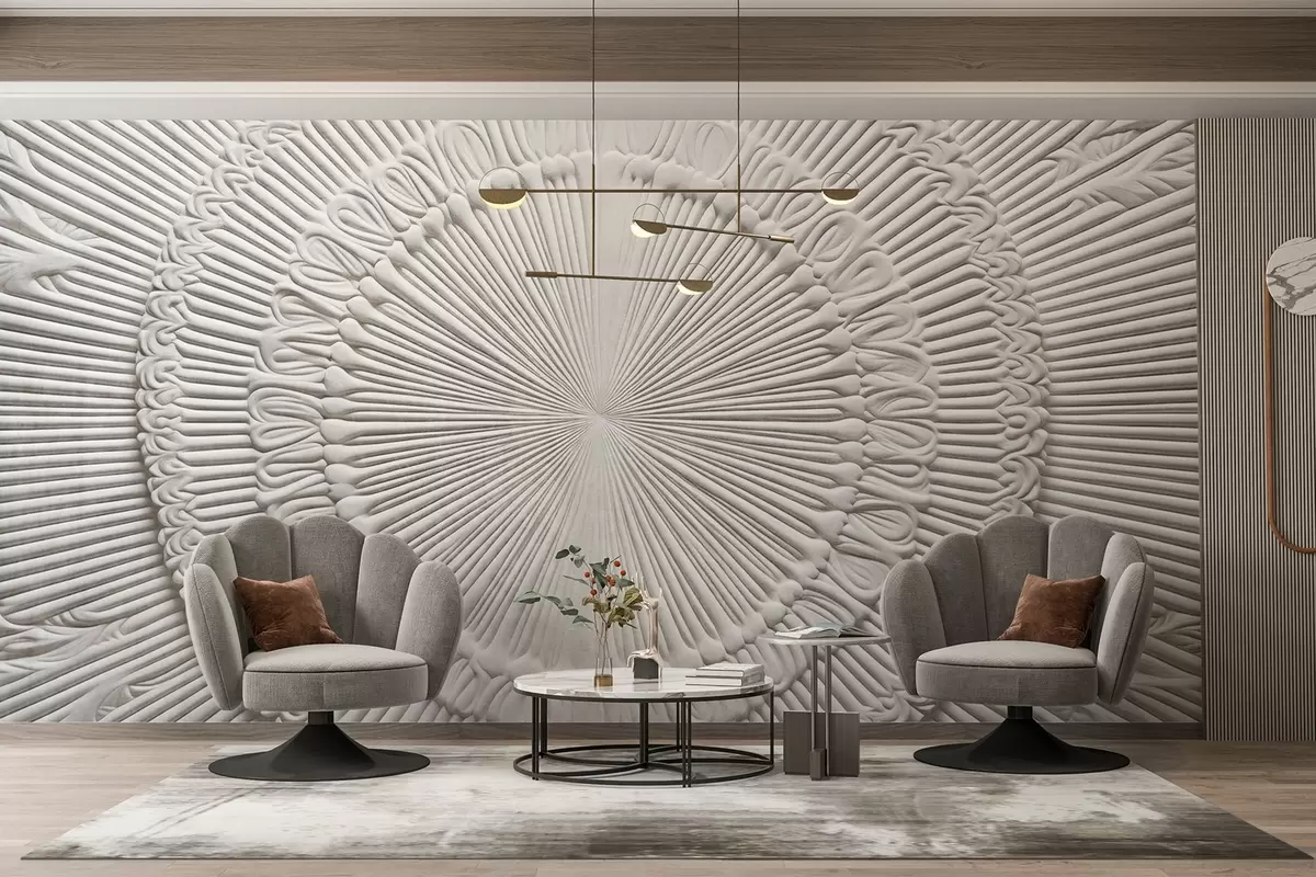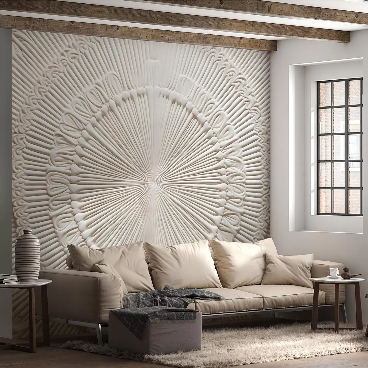 Papier peint Impression circulaire texturée abstraite avec des lignes radiales et des éléments décoratifs, design symétrique, texture en relief N° w09154