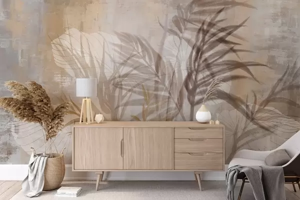 Papier peint Illustration botanique beige et brune d'herbe de la pampa, de textures douces et d'une composition minimaliste N° w09162