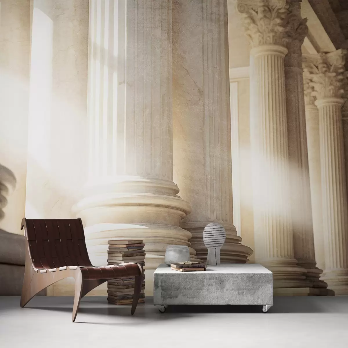 Papier peint Colonnes, architecture classique, design élégant, composition symétrique texturée, palette de couleurs neutres N° w09209