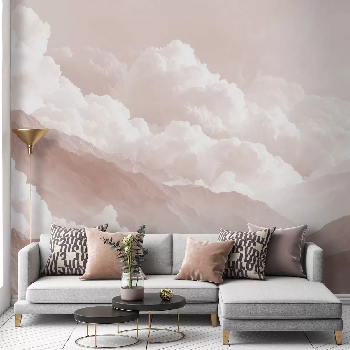 Papier peint Paysage de montagne doux dans des tons légers et poudreux N° w09226v1