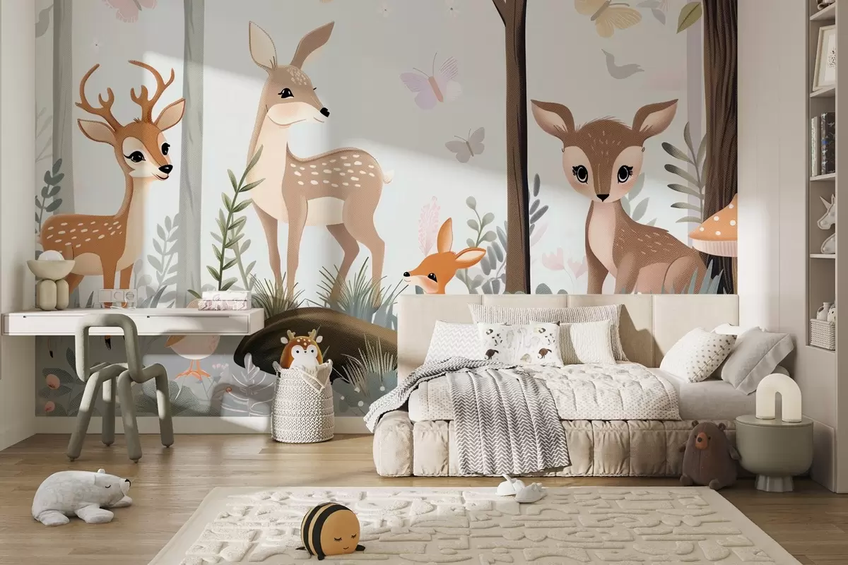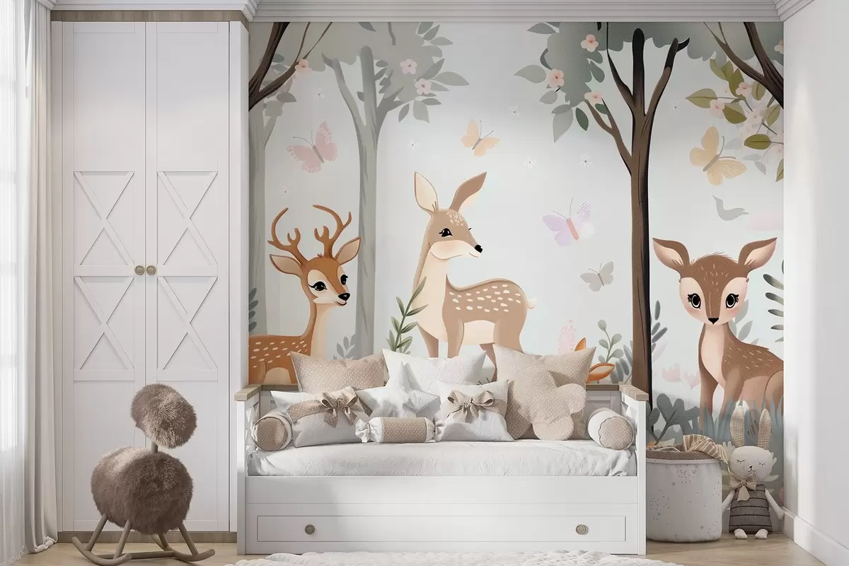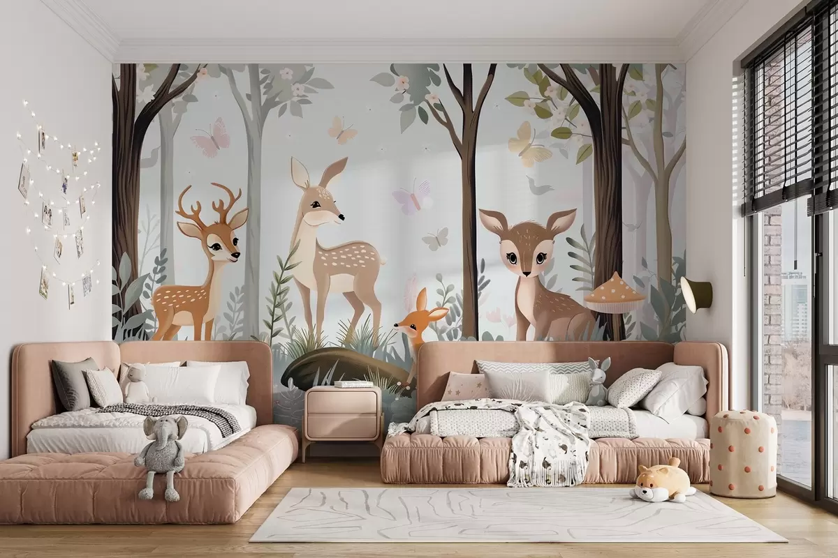 Papier peint Animaux de la forêt dans les tons bleus N° w09227v1