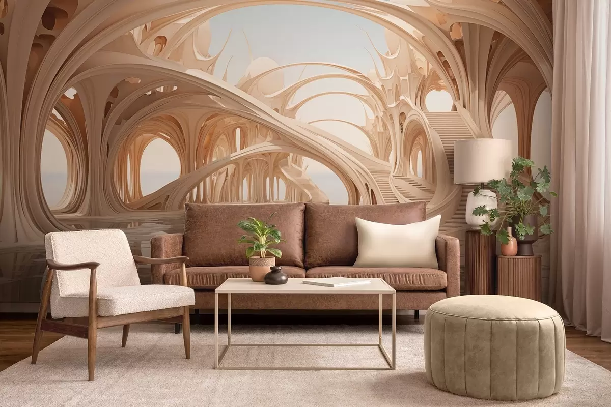 Papier peint Architecture fantaisiste avec des arches au-dessus de l'eau N° w09241