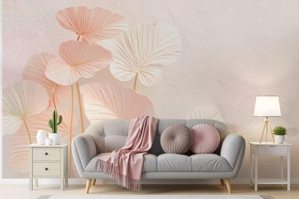 Papier peint Grandes feuilles tropicales élégantes d'une couleur rose délicate N° w09252v1