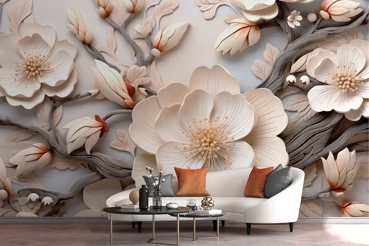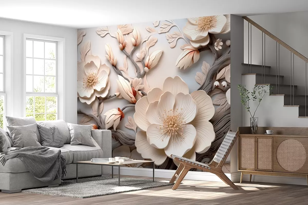 Papier peint Fleurs et branches volumétriques dans des tons clairs N° w09272