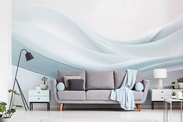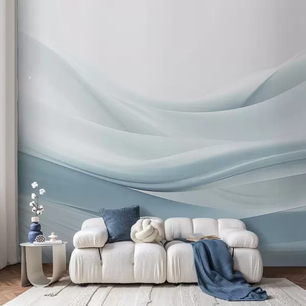 Papier peint Vagues en tissu bleu dans un style abstrait minimaliste N° w09279v2