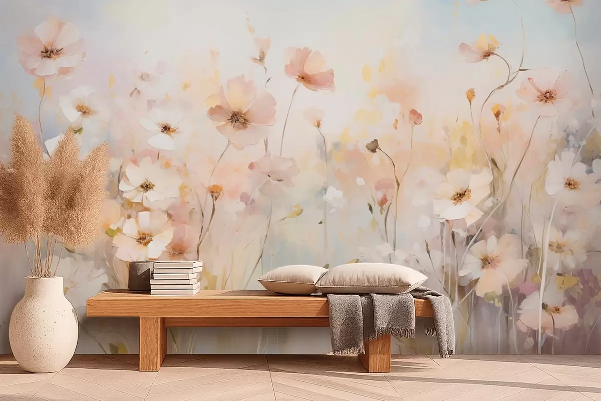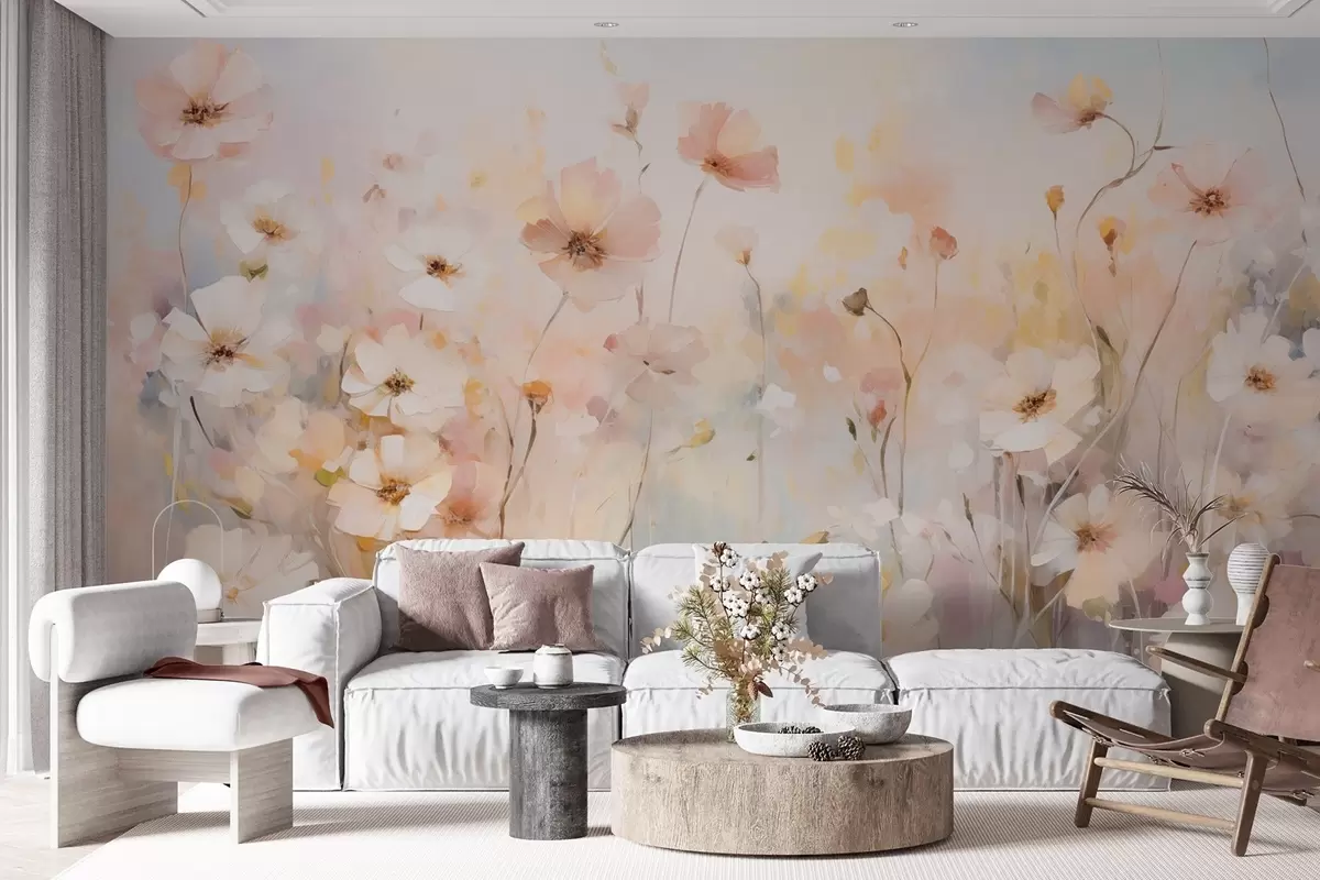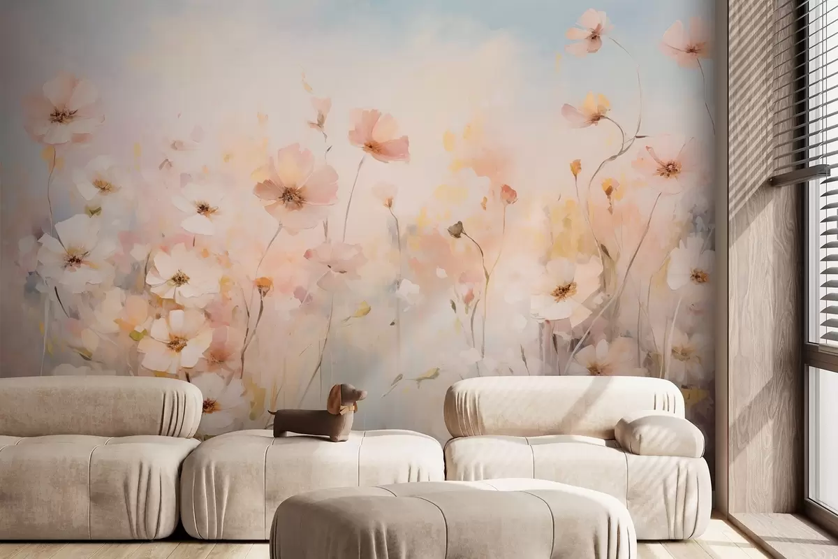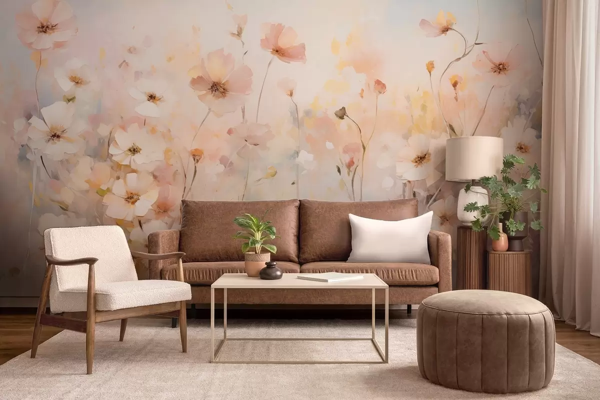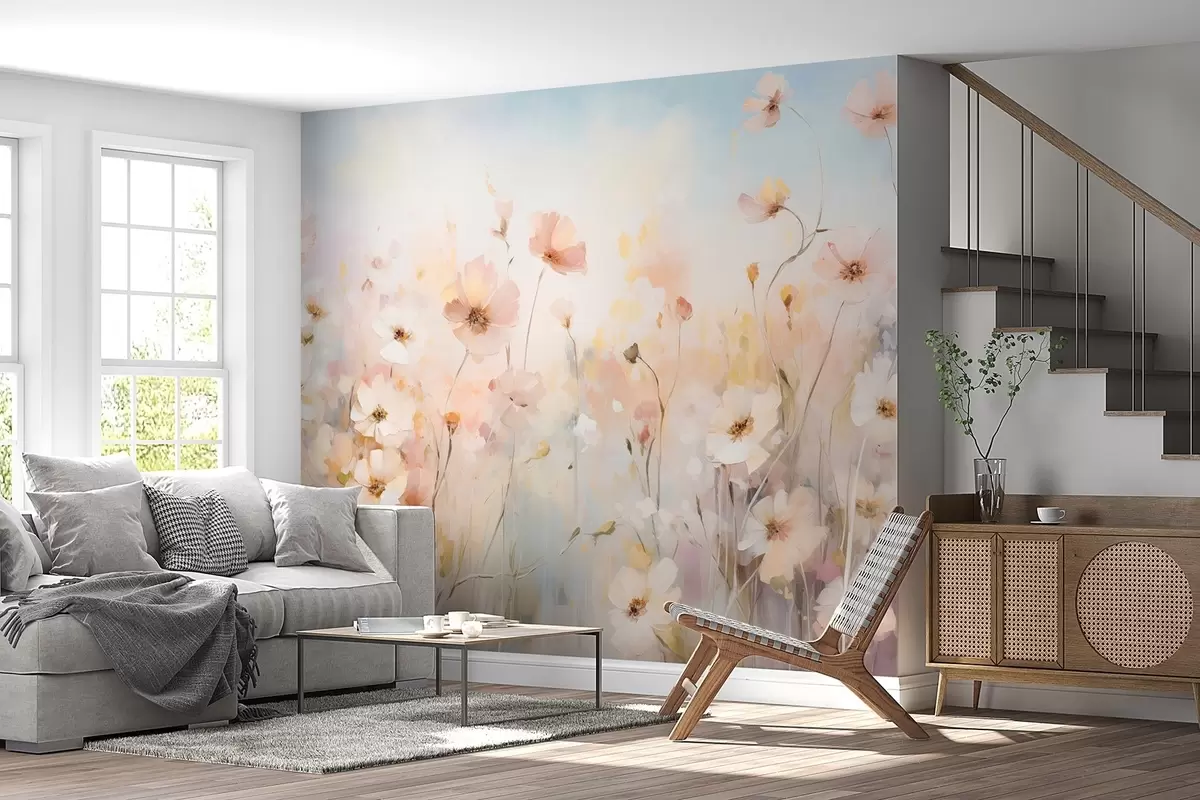 Papier peint Fleurs sauvages dans des tons pastel en style aquarelle N° w09280