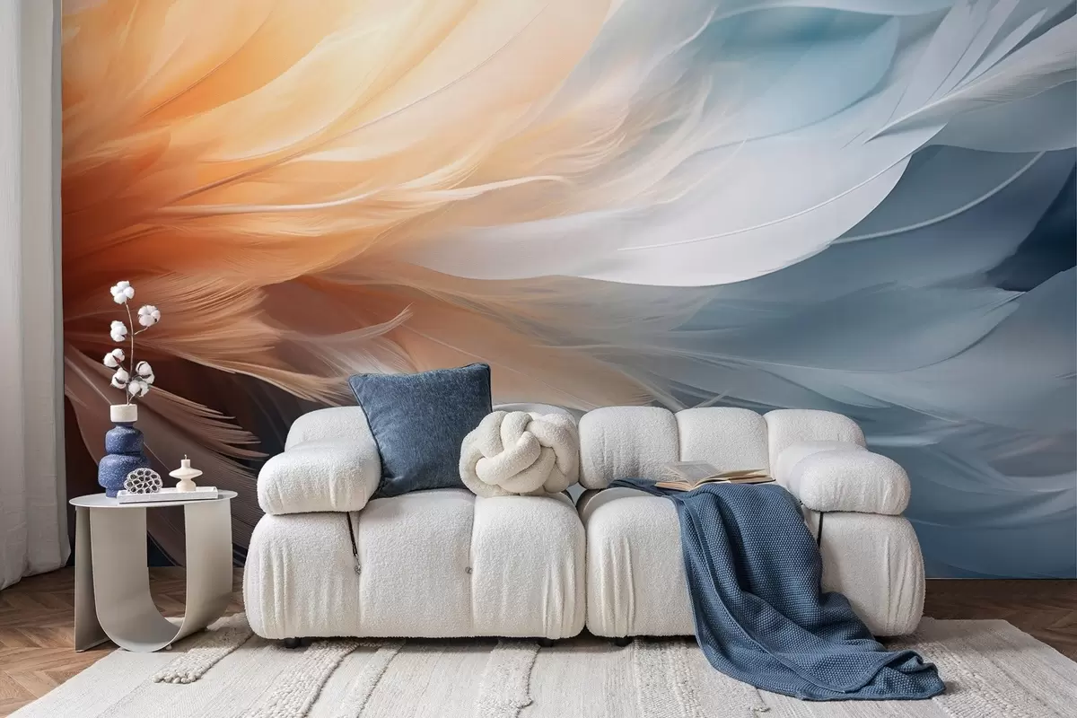 Papier peint Plumes délicates dans des tons dégradés d'orange et de bleu N° w09282