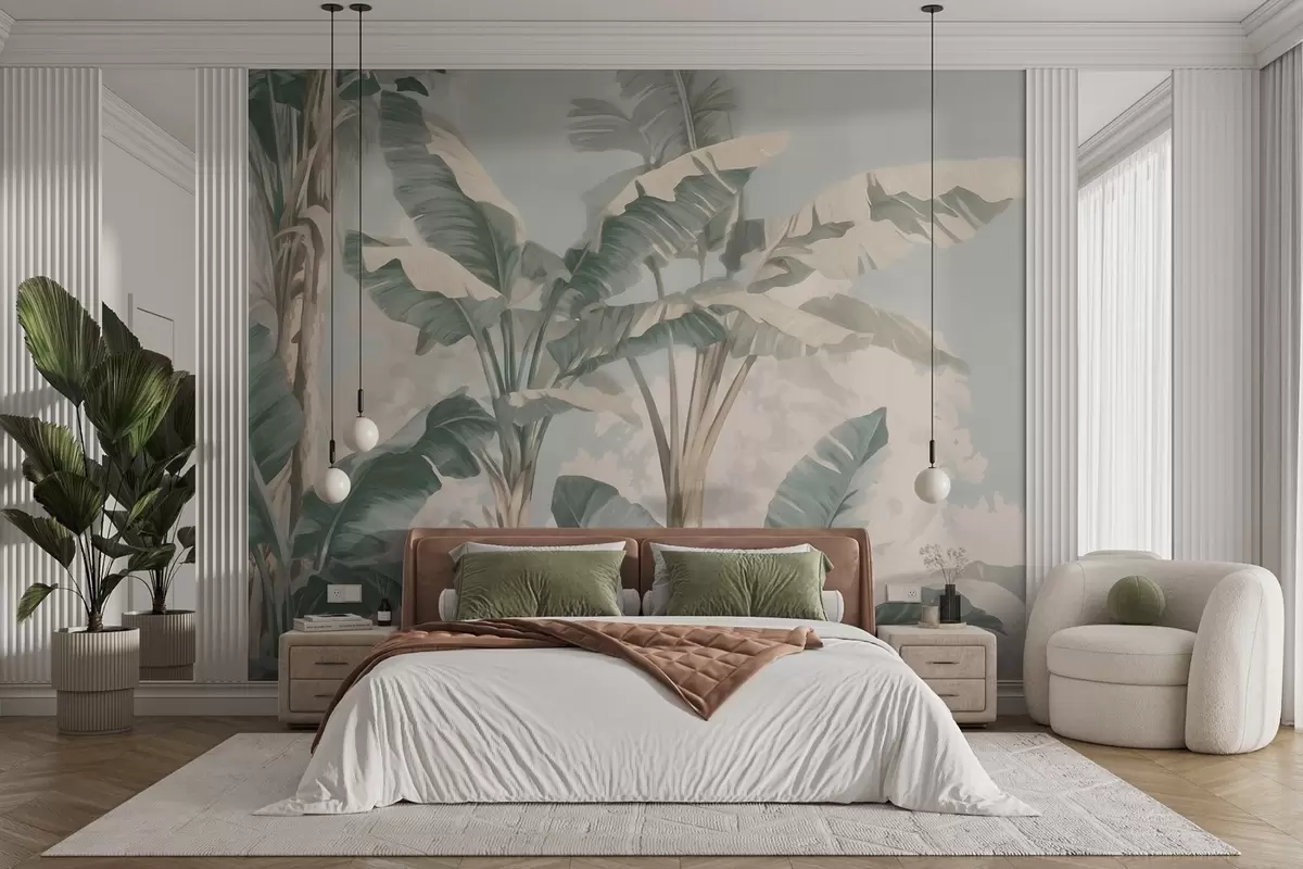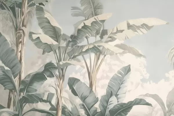 Papier peint Feuilles de bananier tropicales dans des tons pastel doux N° w09311