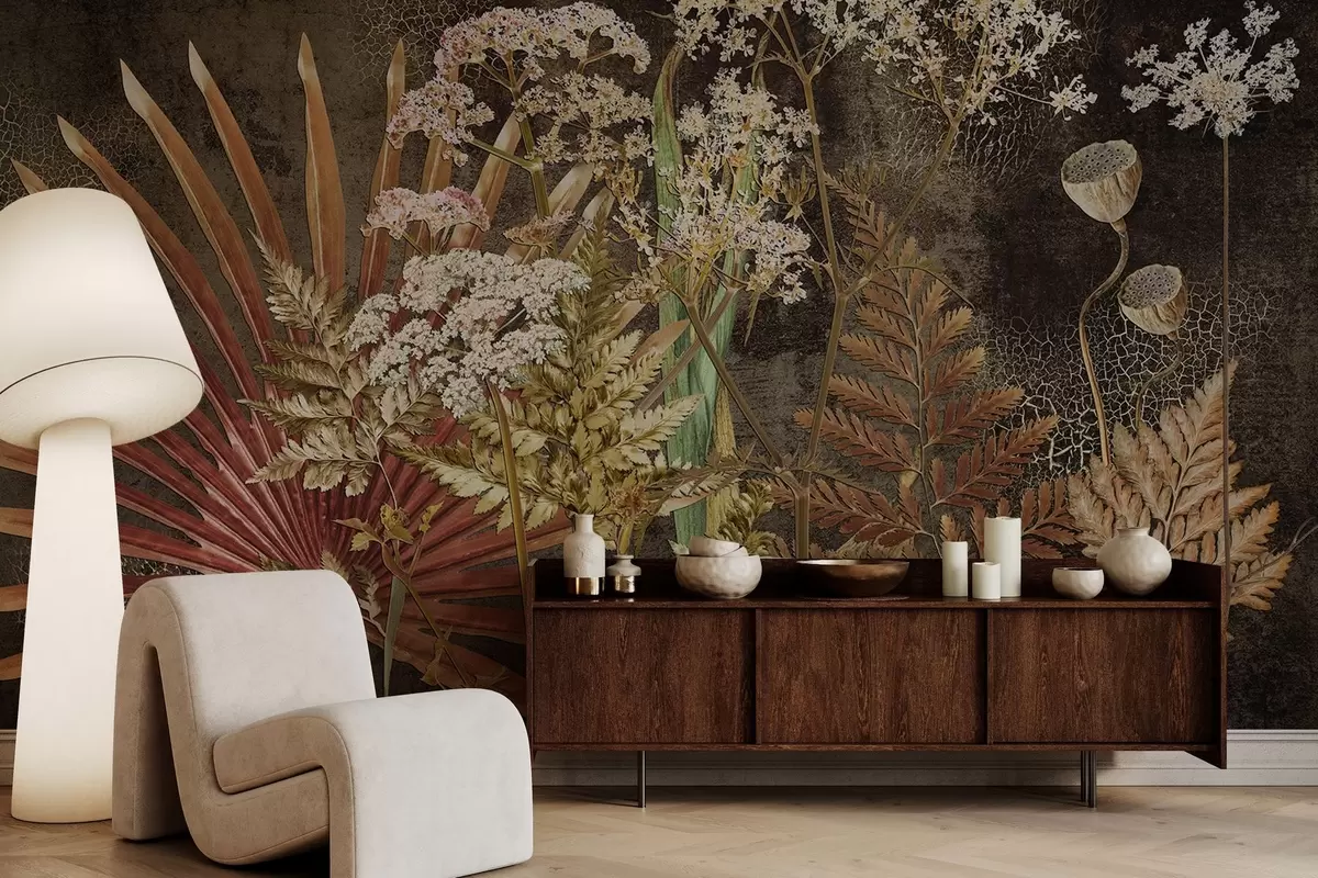 Papier peint Herbier sur fond sombre N° w09323