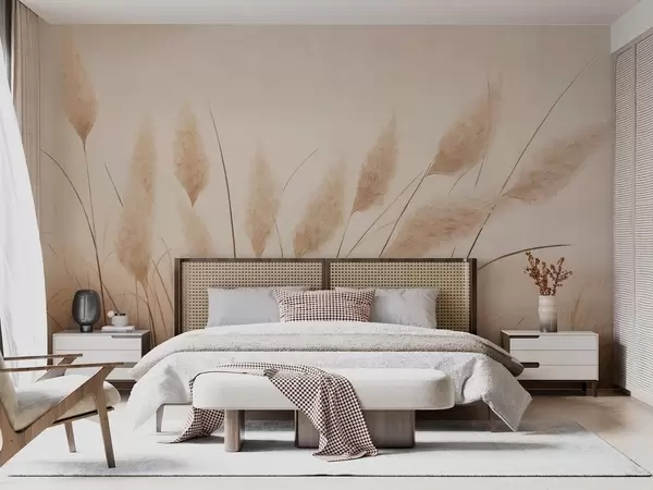 Papier peint Herbe de pampa beige tendre dans le champ N° w09324