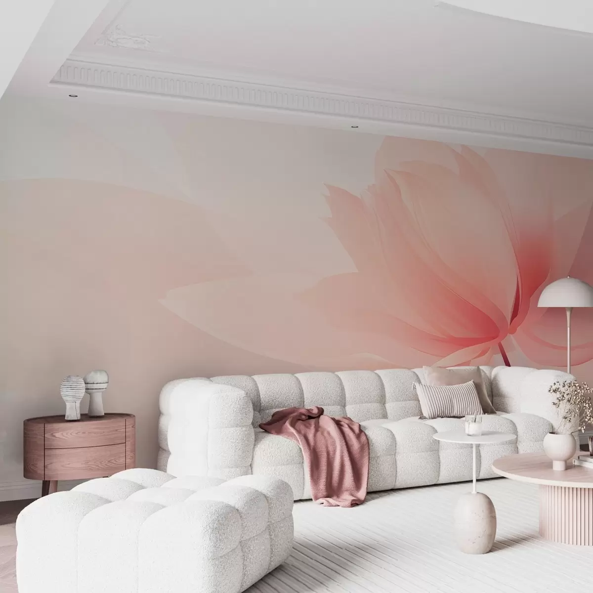 Papier peint Grande fleur aux tons doux de rose pêche N° w09356