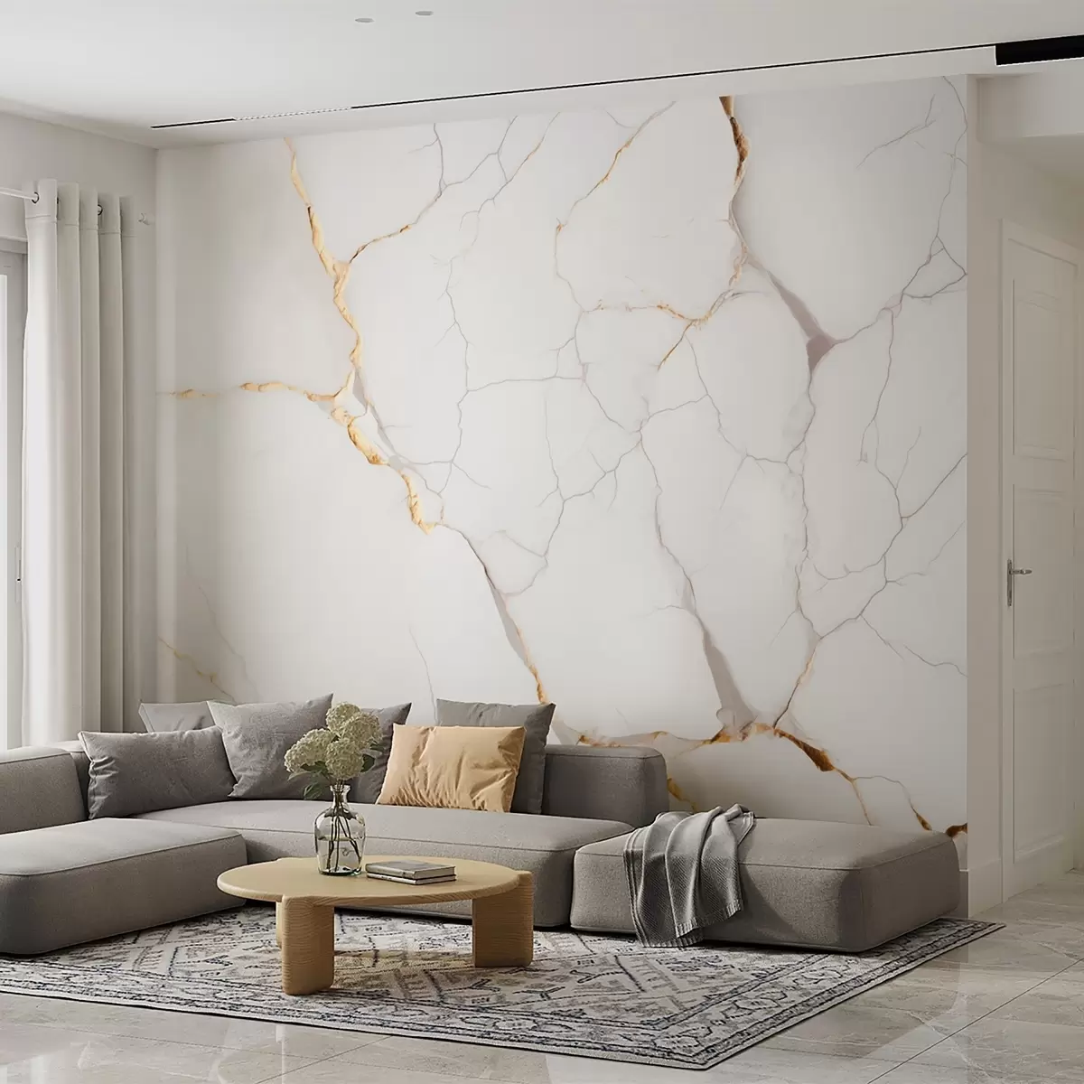 Papier peint Imitation du marbre avec de fines fissures et des veines jaunes N° w09390