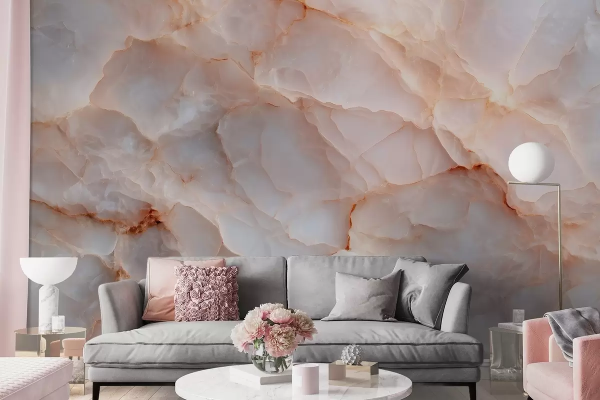 Papier peint Imitation luxueuse du marbre dans des tons beige-gris avec un effet chatoyant N° w09412