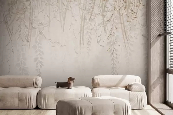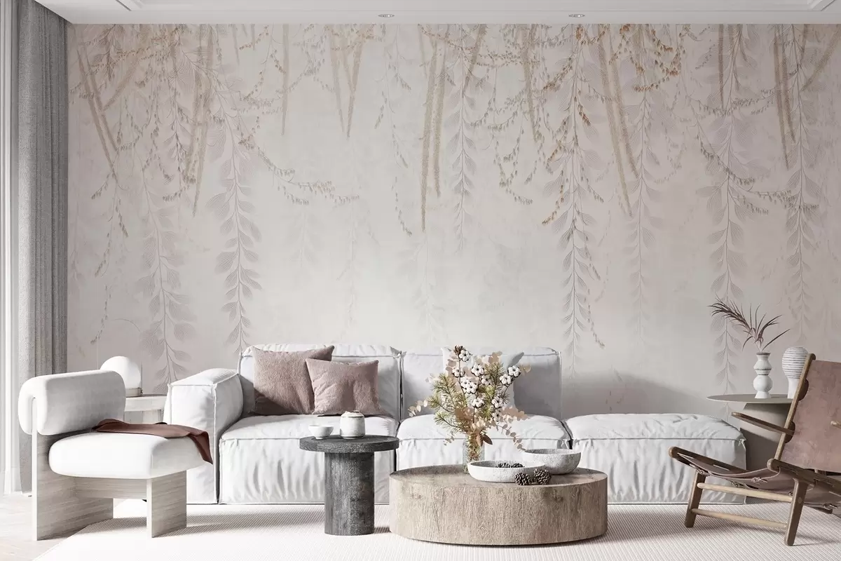 Papier peint Feuilles et branches légères suspendues dans des tons beiges N° w09433