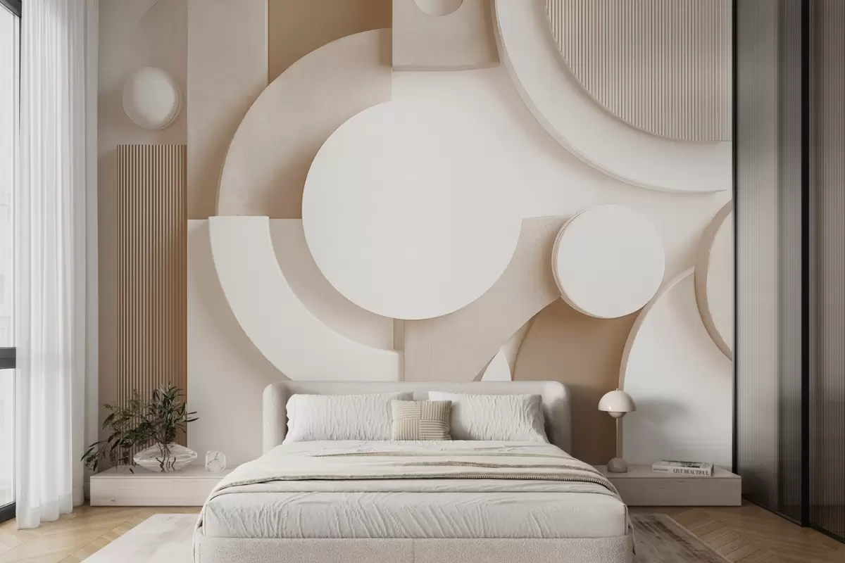 Papier peint Abstraction volumétrique moderne dans des tons beiges N° w09441v1