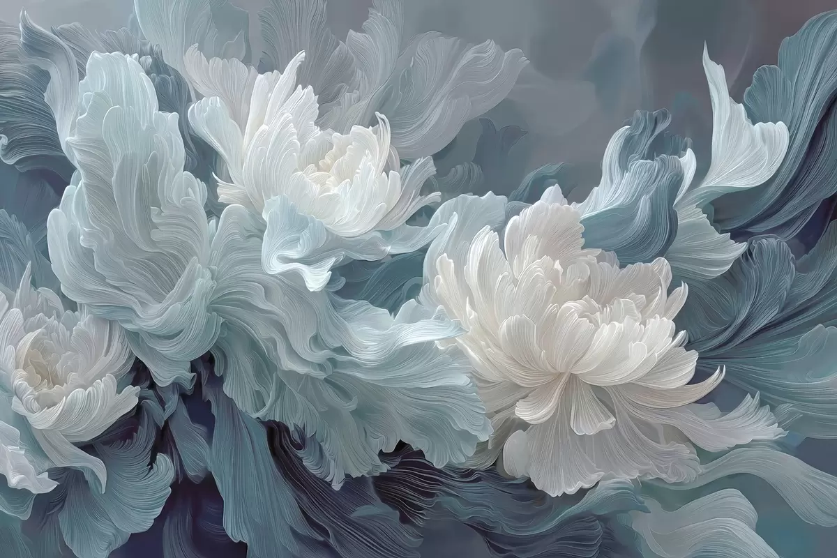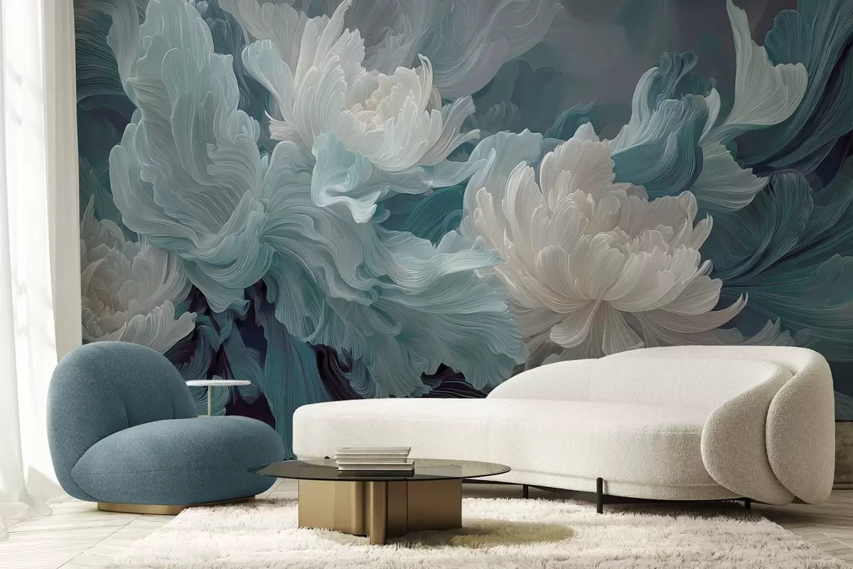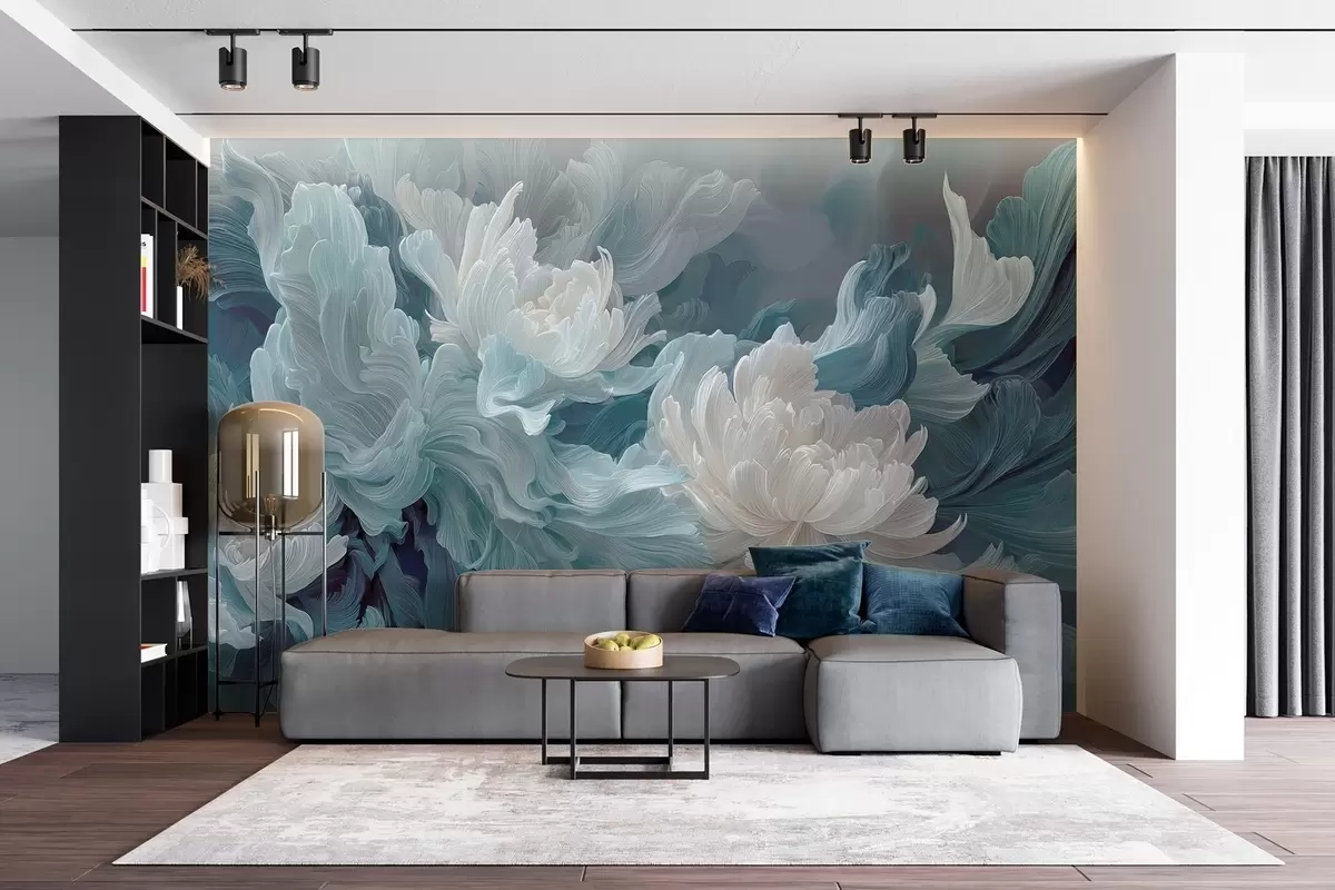Papier peint Fleurs abstraites dans des tons bleus et turquoise N° w09452