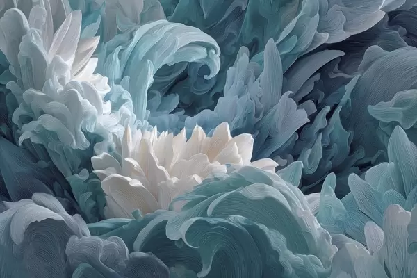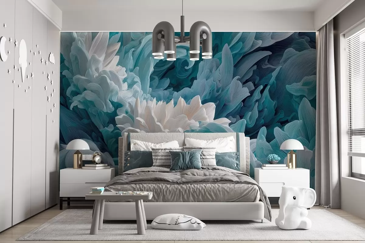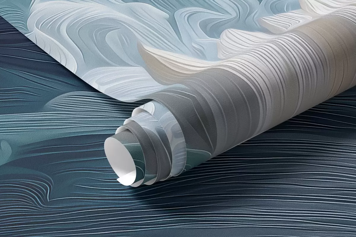 Papier peint Danse des pétales et des vagues de l'océan dans des tons bleus N° w09454