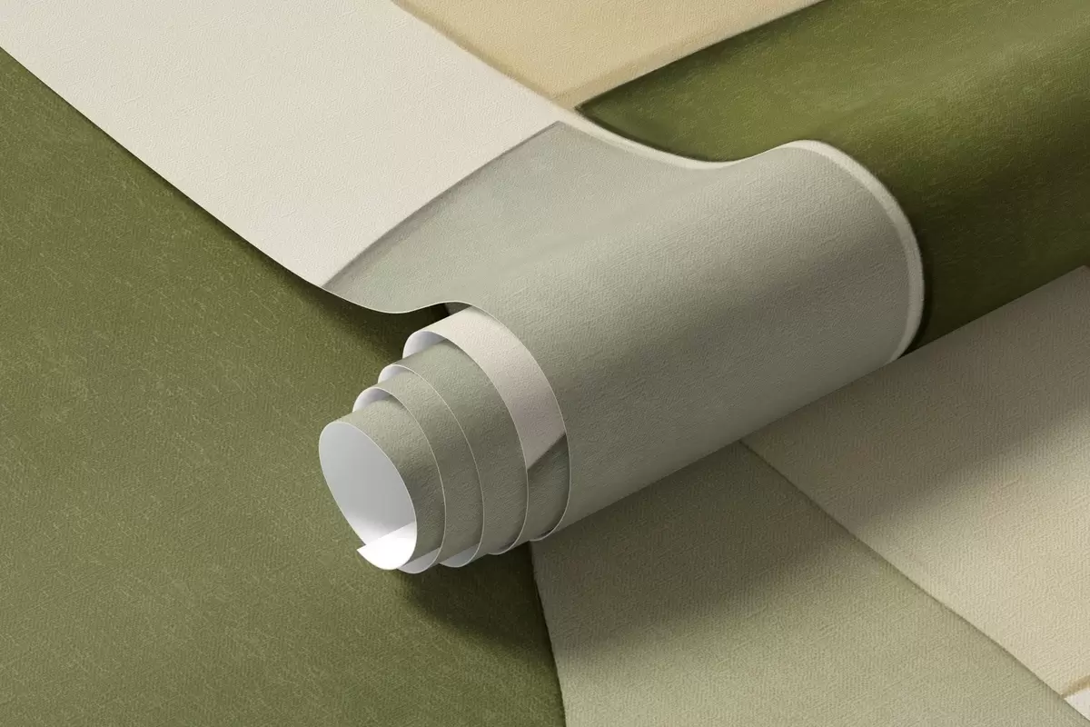 Papier peint Formes abstraites texturées dans des tons verts et jaunes, couleurs douces, composition minimaliste, arrière-plan neutre N° w09467