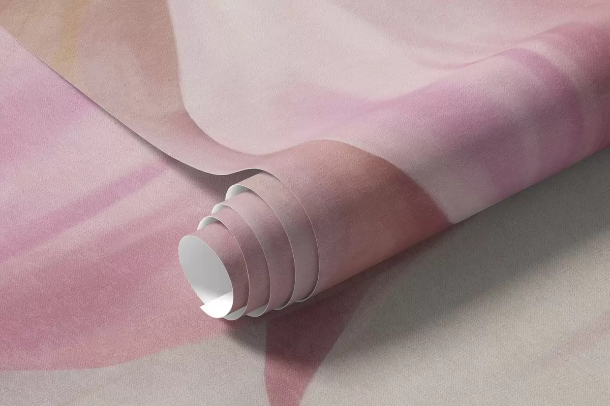 Papier peint Fleurs roses suspendues, fond gris clair, composition florale texturée, art botanique, couleurs pastel N° w09471