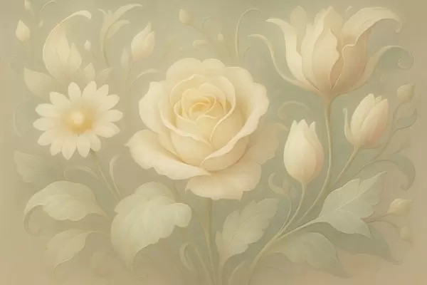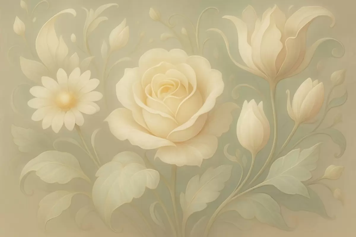 Papier peint Composition vintage délicate avec des roses beiges sur fond vert clair N° w09499