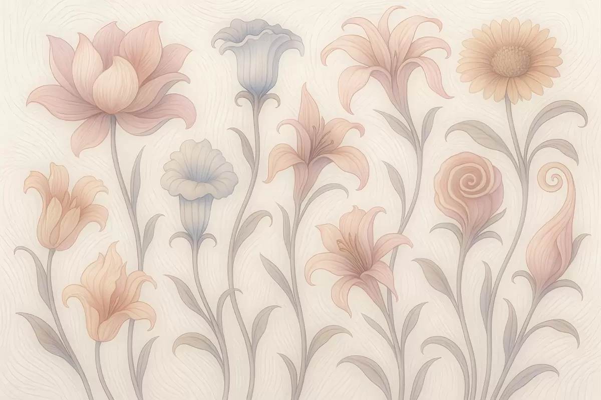Papier peint Composition florale délicate aux couleurs pastel N° w09503