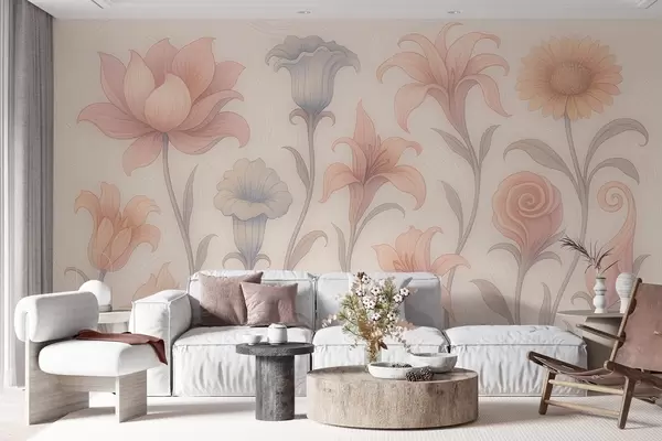 Papier peint Composition florale délicate aux couleurs pastel N° w09503