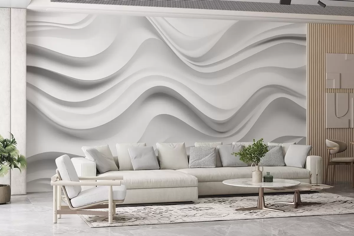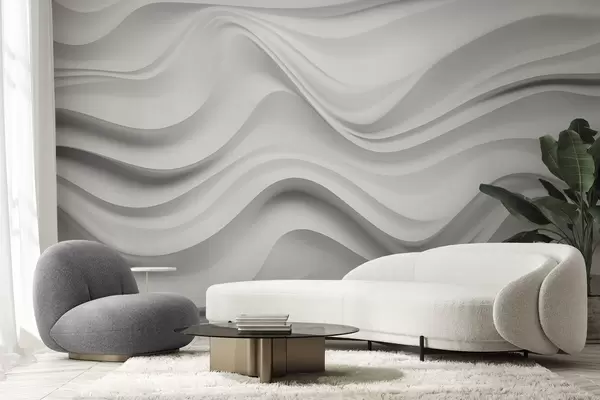 Papier peint Composition 3D abstraite en noir et blanc avec des vagues douces N° w09506