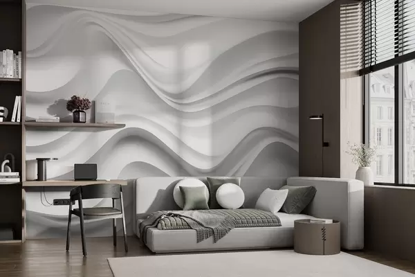 Papier peint Composition 3D abstraite en noir et blanc avec des vagues douces N° w09506