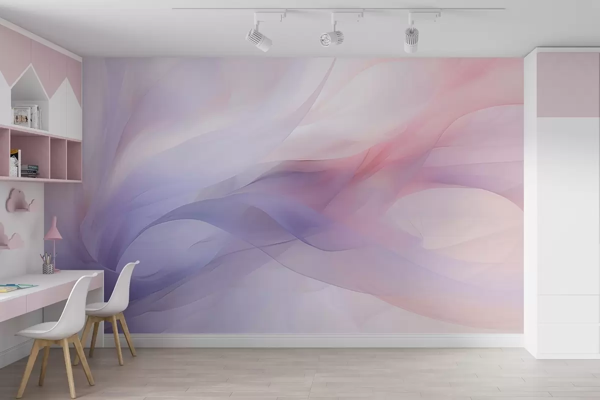 Papier peint Vagues abstraites douces dans les tons bleus et roses N° w09508