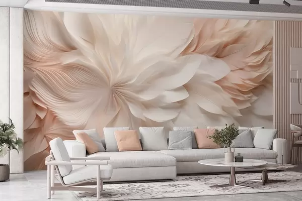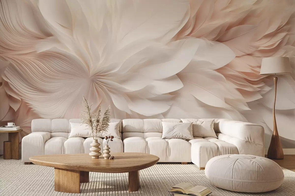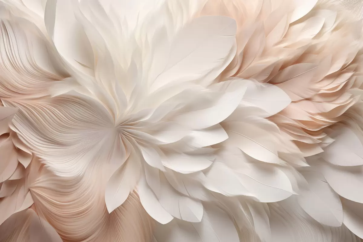 Papier peint Délicates plumes abstraites en mouvement dans des tons beige et crème N° w09509