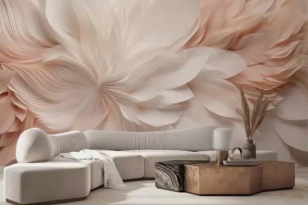 Papier peint Délicates plumes abstraites en mouvement dans des tons beige et crème N° w09509