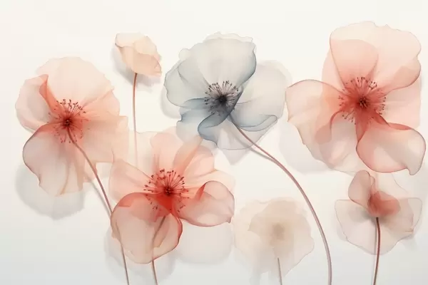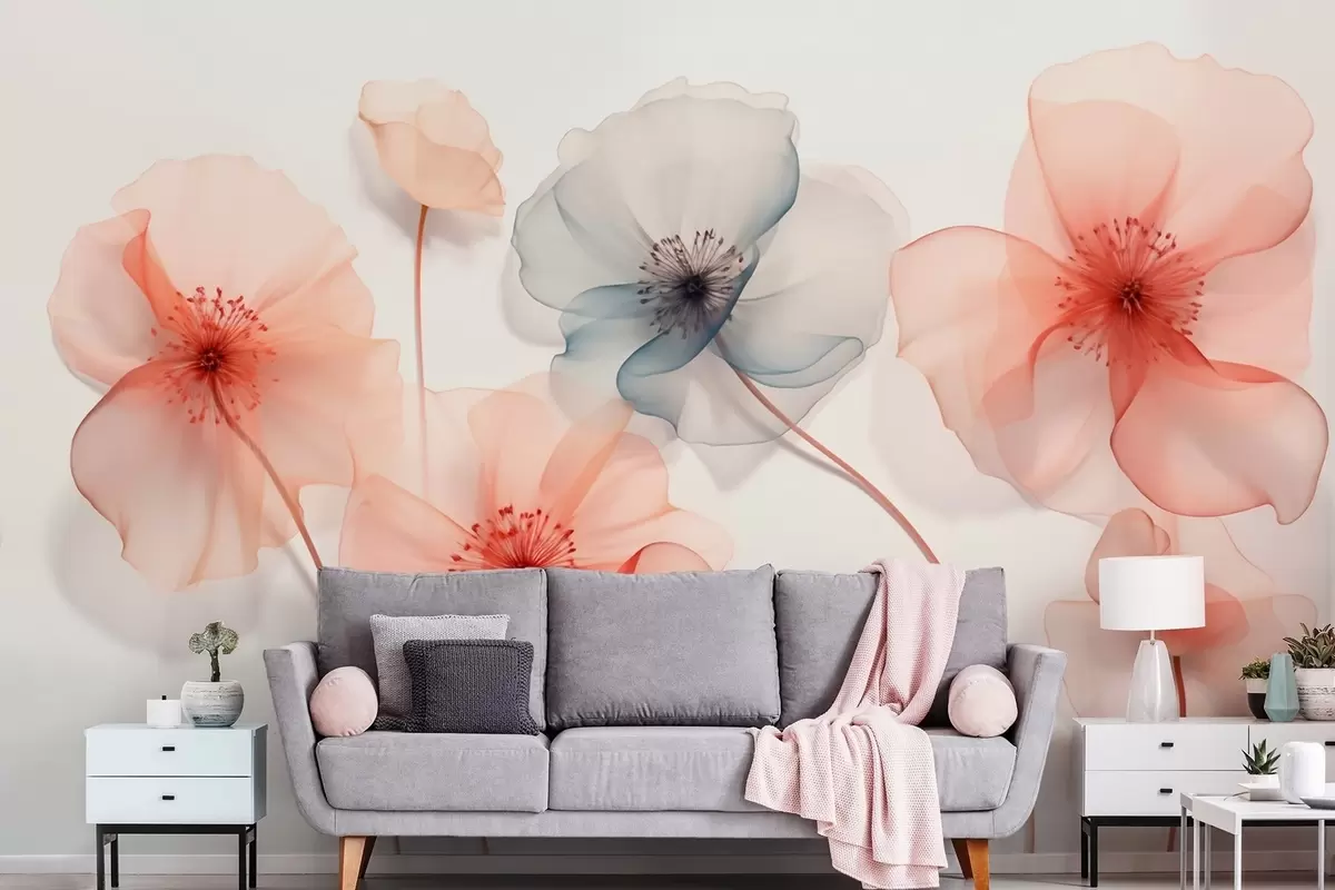 Papier peint Fleurs translucides dans les tons rouges et bleus N° w09515