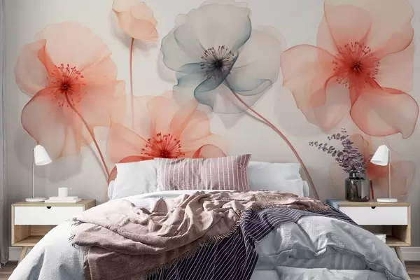 Papier peint Fleurs translucides dans les tons rouges et bleus N° w09515