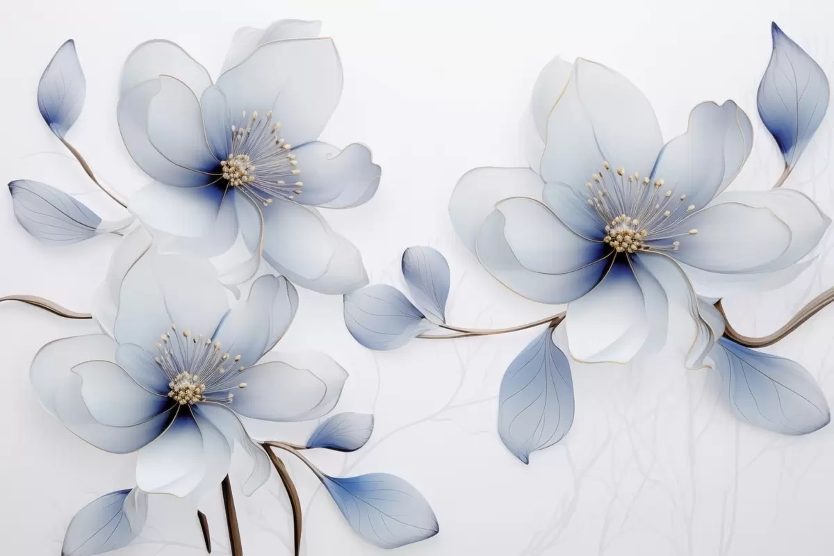 Papier peint Élégante composition florale de magnolias dans les tons bleus N° w09520
