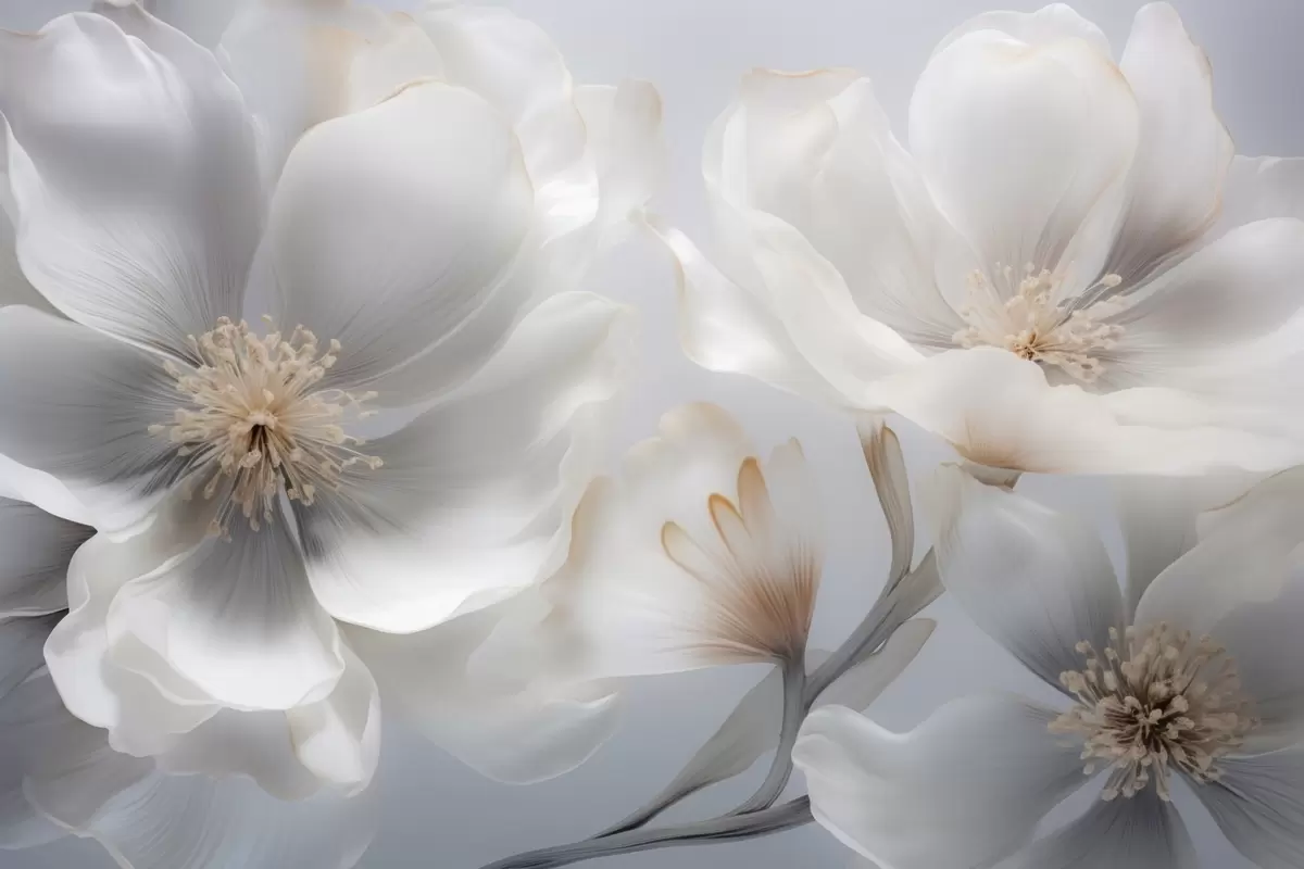 Papier peint Fleurs nacrées dans des tons beige-gris et crème laiteux N° w09527