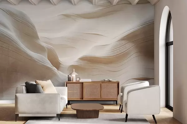 Papier peint Murs texturés en grès canyon avec des courbes et des textures douces et fluides, beauté naturelle, minimalisme N° w09533